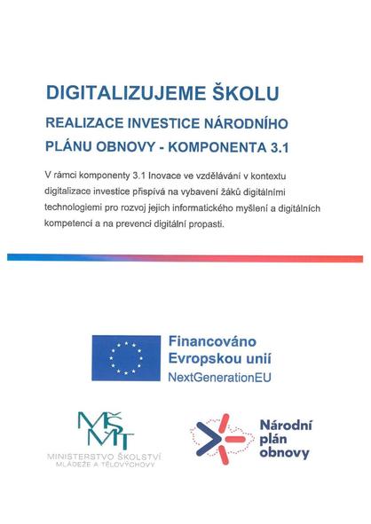 Úvod > Dotace MŠ > Digitalizujeme školu - komponenta 3.1